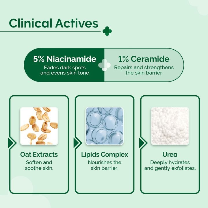 Lipids Complex replenishes essential fats to fortify the skin barrier, while Oat Extracts promotes hydration for a stronger, healthier skin.