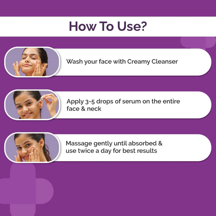Massage gently until serum gets absorbed & use twice a day for best results