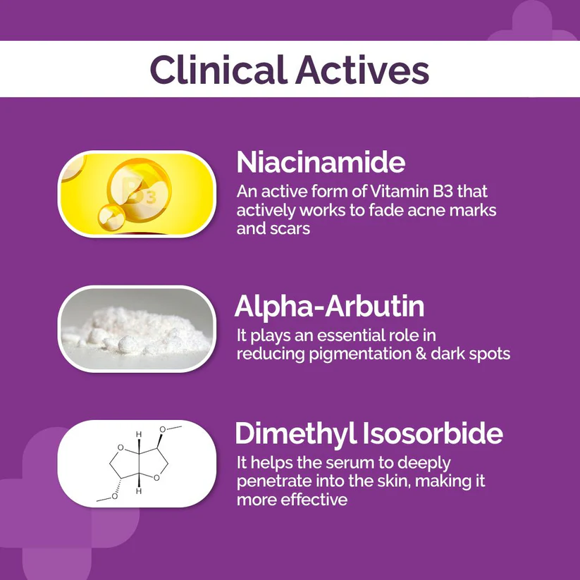 It’s a lightweight, fragrance-free serum by The Derma Co that combines 5% Niacinamide, Alpha Arbutin, and Multivitamins to promote clear and spotless skin. It is designed by dermatologists to be free from fragrances.